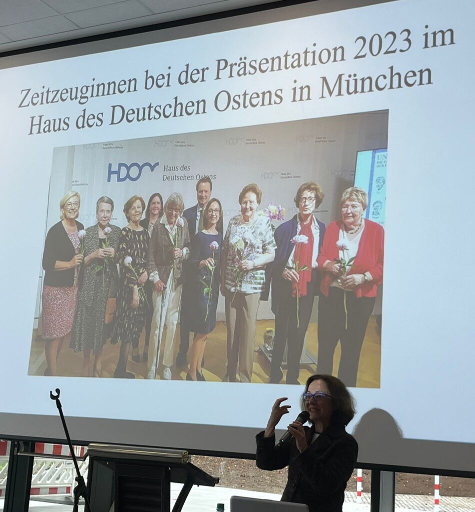 Frau Prof. Dr. Daniela Neri-Ultsch, Universität Regensburg, stellte die Ausstellung „Ungehört – die Geschichte der Frauen, Flucht, Vertreibung, Integration“ vor, die sie selbst in Zusammenarbeit mit dem Haus des Deutschen Ostens kuratiert hat. Eindrucksvoll wird darin das Schicksal und die Leistungen der Frauen aus verschiedenen Vertreibungsgebieten mit Nachkriegsgewalt, Internierung in Lagern, Zwangsarbeit sowie der schwere Wiederanfang in Deutschland nachgezeichnet. Schlüssig wurde die unterschiedliche Bewältigung des Heimatverlustes in der ersten und zweiten Generation aufgezeigt. Die Notwendigkeit für Frauen, Aufgaben und Berufe ihrer Männer übernehmen zu müssen, führte schließlich zu einem nachhaltig veränderten Rollenbild der Frau.