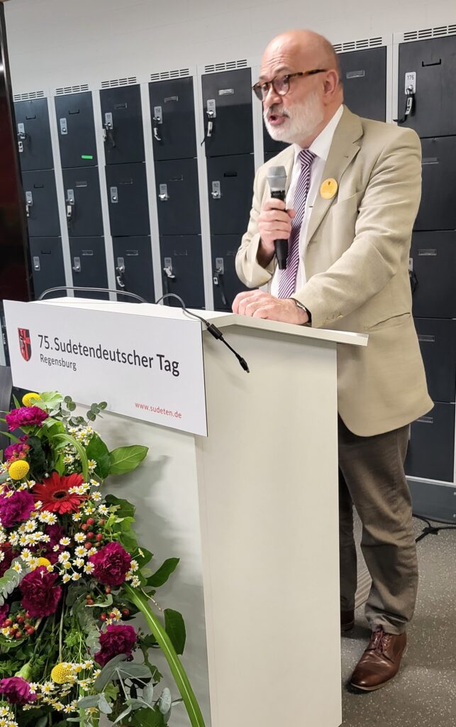 Dieser Frage ging eine Vortragsveranstaltung des Sudetendeutschen Sozial- und Bildungswerkes mit der Bildungsstätte Der Heiligenhof, der Akademie Mitteleuropa und des Arbeitskreises Sudetendeutscher Akademiker e.V. im Rahmen des 75. Sudetendeutschen Tages in Regensburg auf den Grund. Der übervolle Saal mit interessierten Zuhörern bewies bereits die Aktualität des Themas. In einem kurzen Einstiegsimpuls des Vorsitzenden des ASA Helge Flöter, in dem er einen Überblick über die Entstehung und die Entwicklung der Sudetendeutschen Frage gab, stützte er sich auf einen Artikel von Hans Knapek, Vorsitzender der Stiftung SSBW, den dieser im Literaturspiegel des ASA 2024 veröffentlichte.